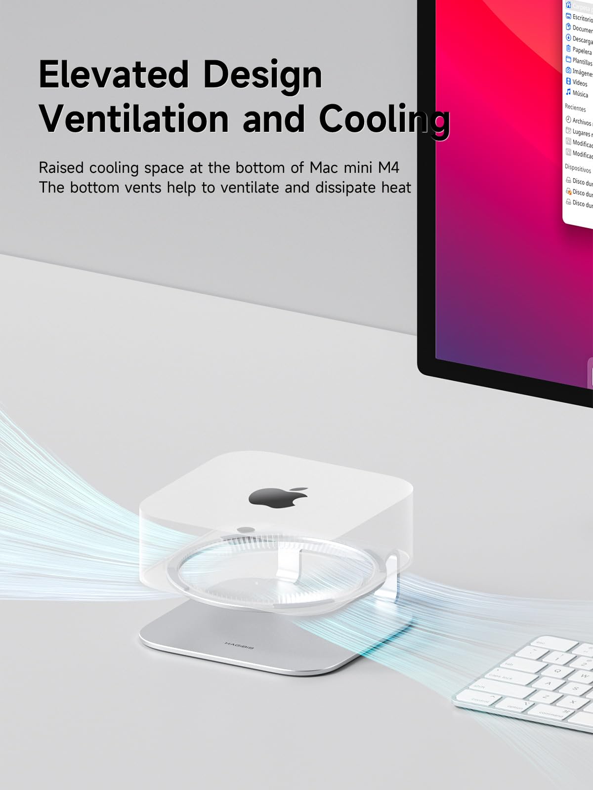 - Elevated Design: Hagibis alloy Mac mini M4 stand elevates the cooling space at the bottom of Mac mini M4, with bottom vents to assist in ventilation and cooling