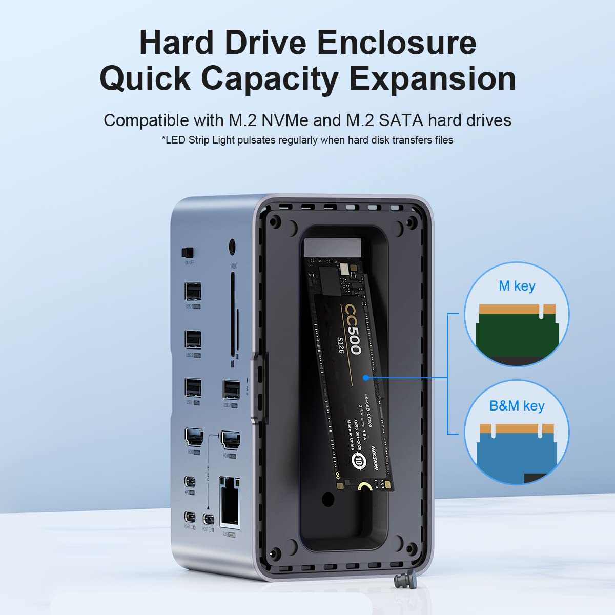 Hagibis USB C Docking Station Dual Monitor, LED Strip Light USB-C Hub Type-C Adapter with HDMI, M.2 SSD Enclosure, 100W Power Delivery, USB 3.1, Ethernet, SD/TF for MacBook Air Pro, Laptop (U100 Pro)